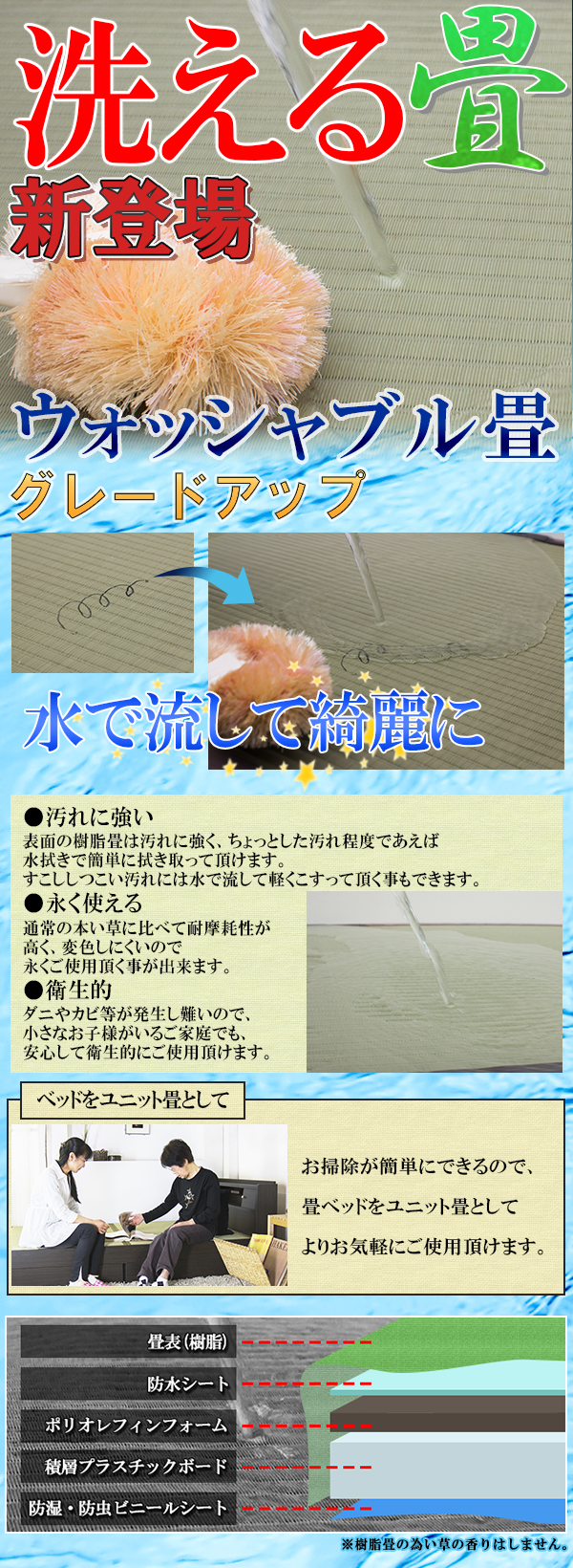 | 商品名:洗える・水拭きできる ウォッシャブル畳にグレードアップ |