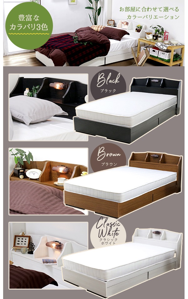 | 商品名:棚 照明 コンセント 引き出し付き デザインベッド(マット付) |