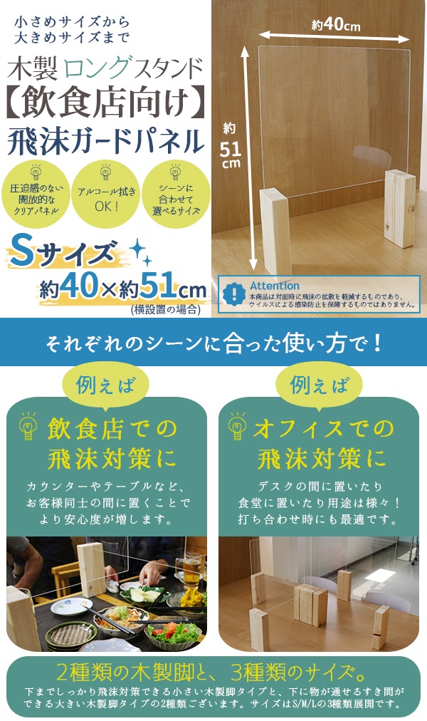 | 商品名:【飲食店向け】飛沫ガードパネル(S 約40×33cm)単体-ロング脚 |