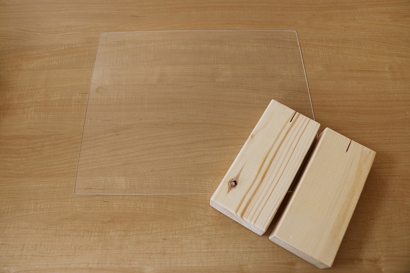 樹脂板×1枚、木製スタンド×2個のセットとなります。